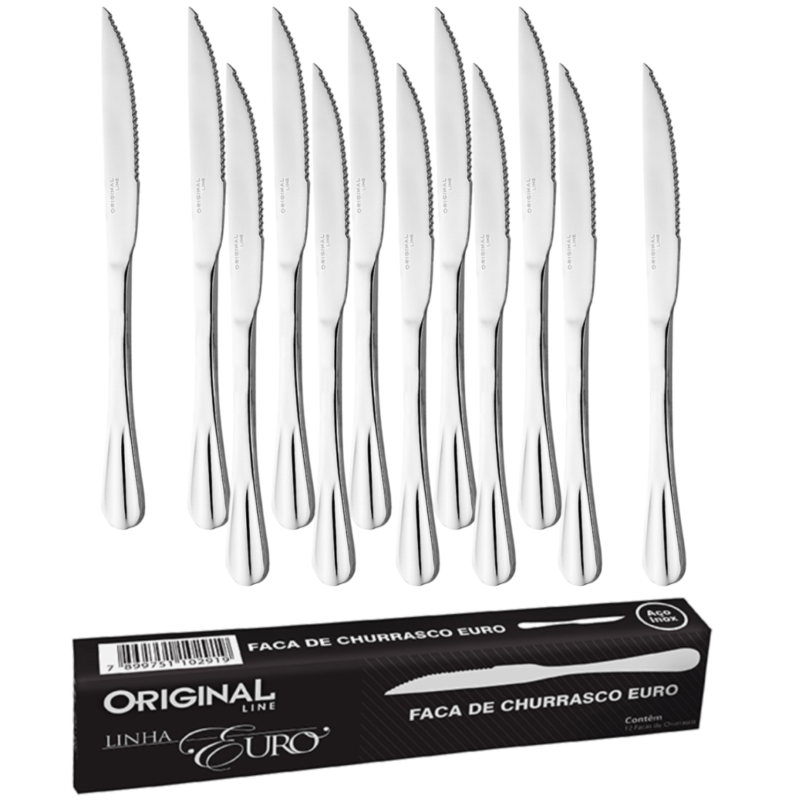 CONJ 12UN FACA INOX CHURRASCO LINHA EURO ORIGINAL LINE