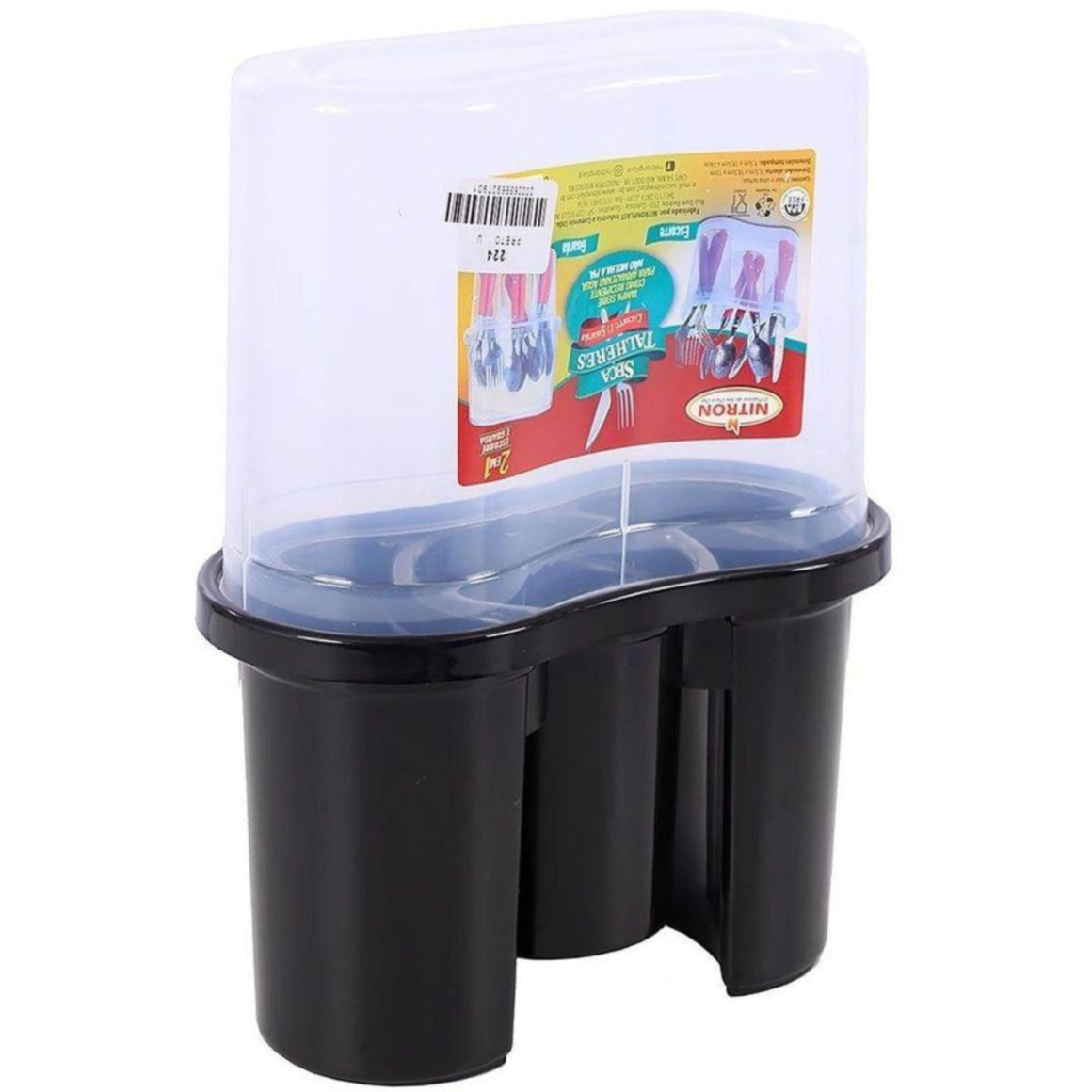 SECADOR PLASTICO DE TALHERES ESCORRE E GUARDA PRETO