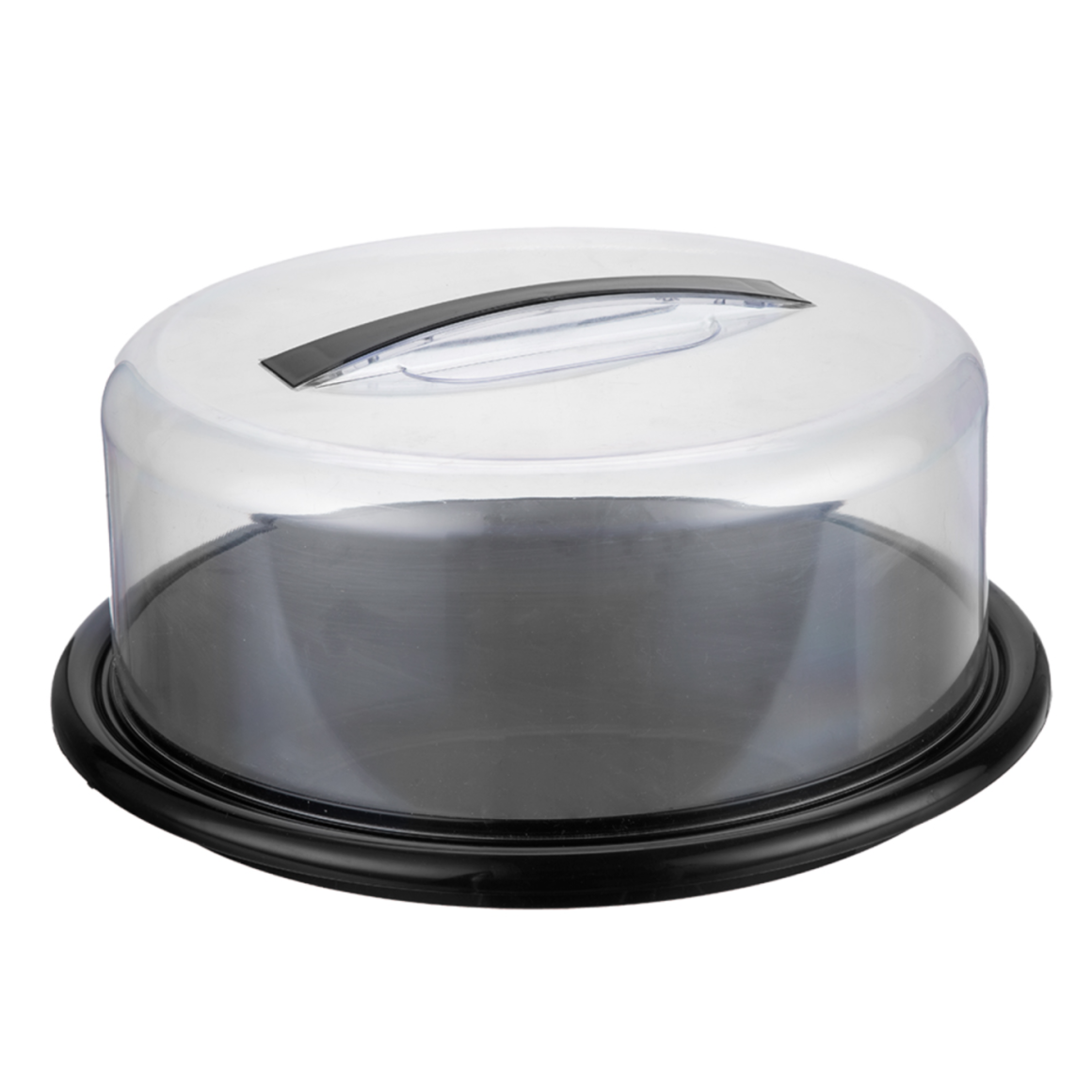 PORTA BOLO ACRILICO REDONDA C/ BASE PRETA TAMPA TRANSPARENTE