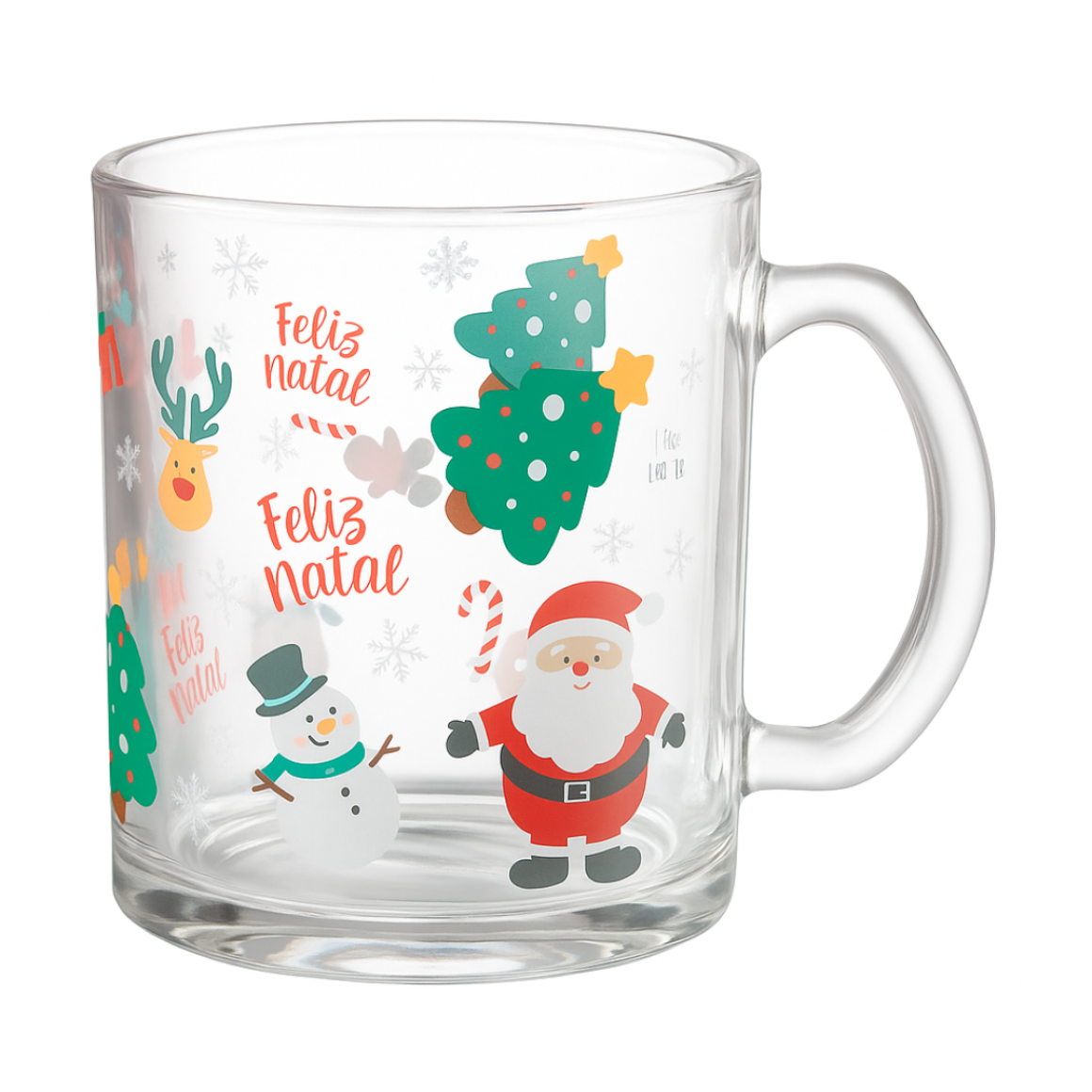 Caneca de Vidro Natalina 320ml – Encanto em Cada Gole!