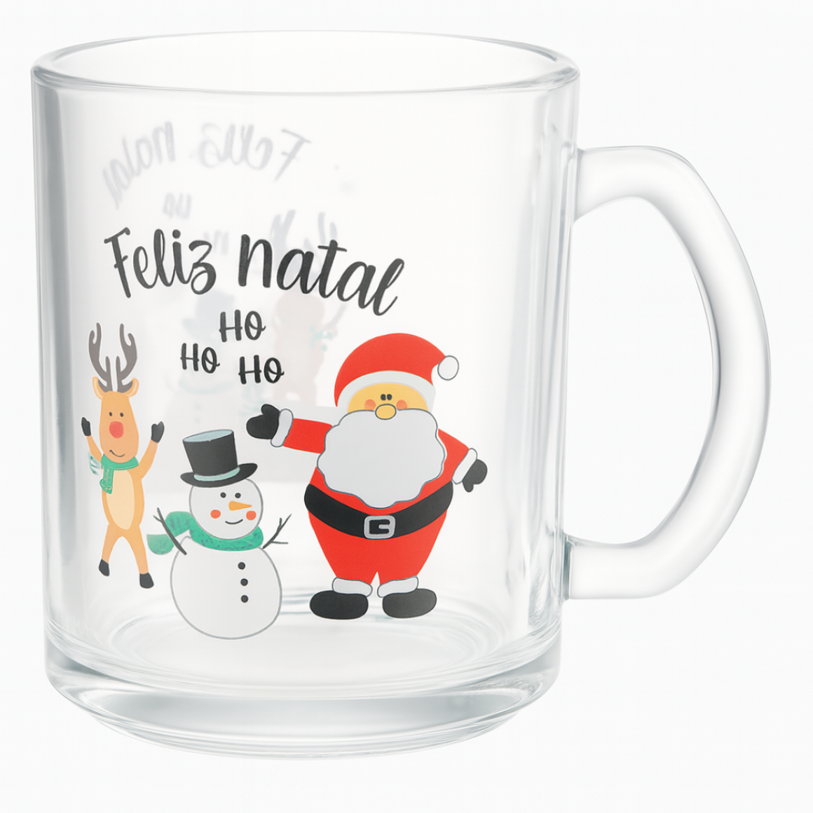 Entre no clima natalino com essa caneca de vidro cheia de charme! Com ilustrações fofas do Papai Noel, boneco de neve e rena, acompanhadas da frase “Feliz Natal Ho Ho Ho”, ela é perfeita para aquecer os corações (e bebidas!) nas festas de fim de ano.