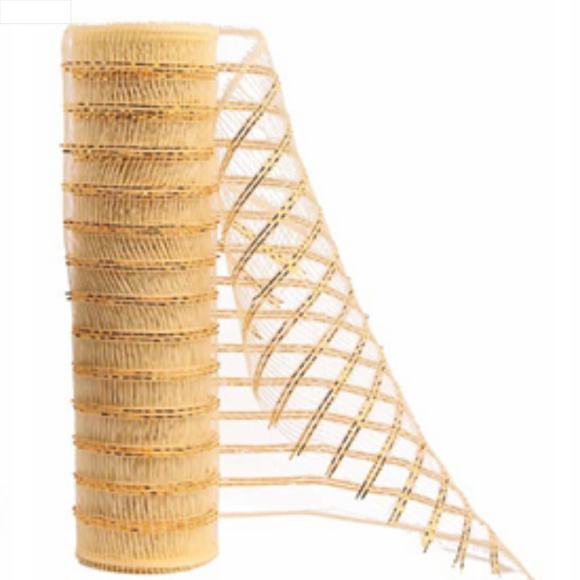 Fita Tela Natalina Bege com Fio Dourado – 26cm x 5m | Toque delicado e sofisticado para sua decoração