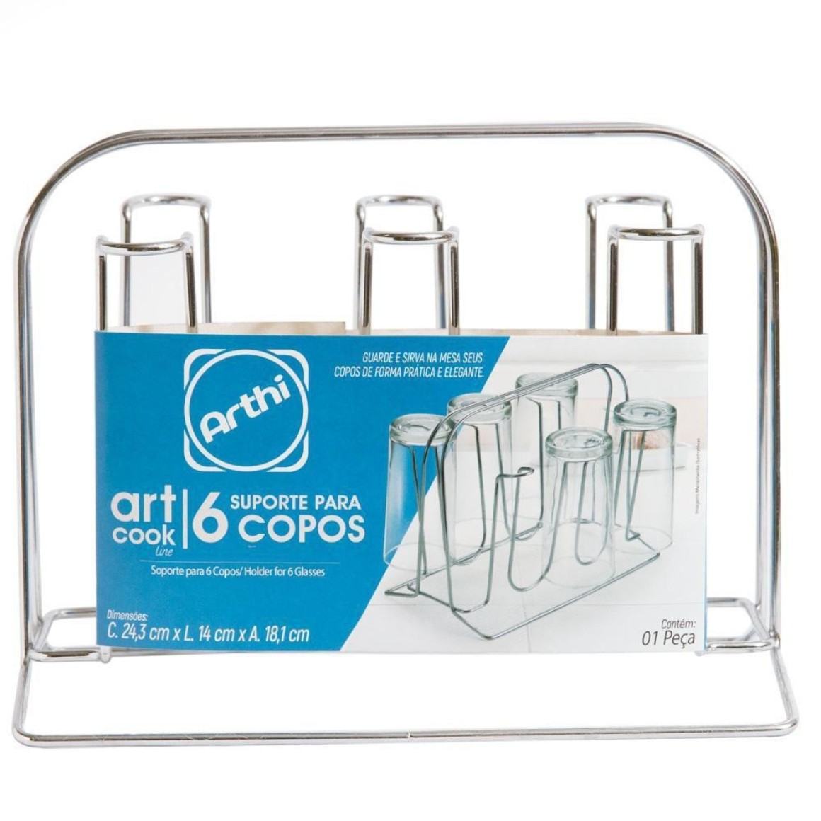 O Porta Copos em Aço para 6 Unidades Cromado da Arthi é fabricado em aço cromado resistente e durável. Produto conta com capacidade para 6 copos e é ideal para secar e guardar seus copos com muito mais praticidade.