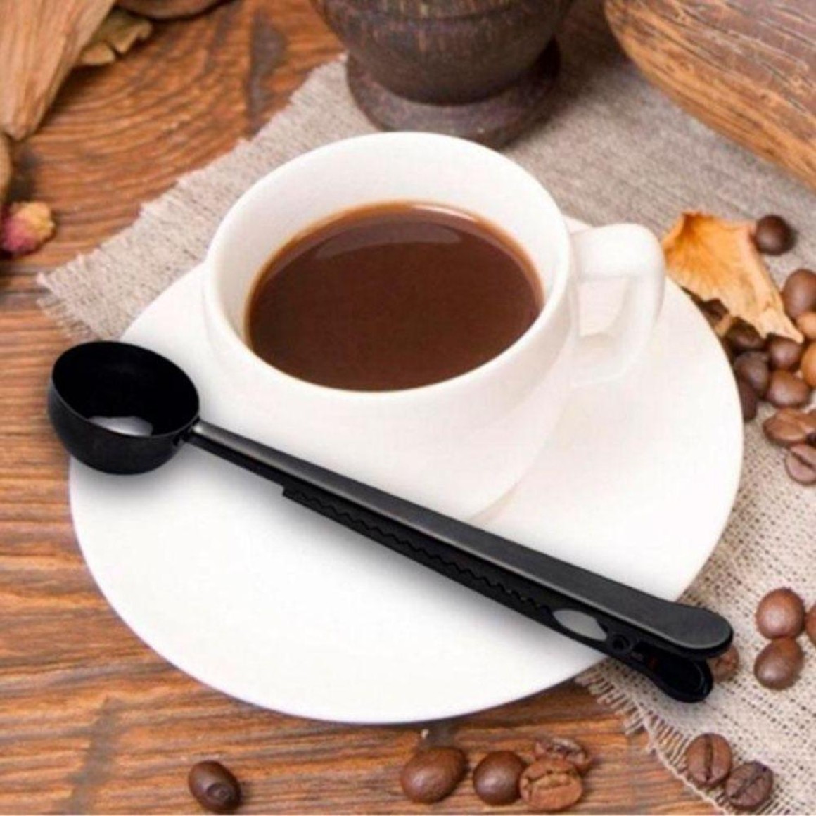 Colher com prendedor para fechar as embalagens. Fabricada em aço inoxidável. Pode ser utilizada para medir café, farinha, açúcar, suplementos, etc. O cabo desta colher possui um prendedor dentado para fechar as embalagens evitando entrada de insetos e preservando a qualidade e o aroma original do produto.