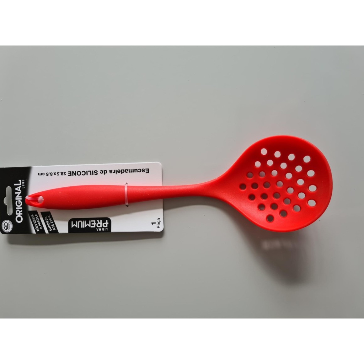 Contém: 1 Escumadeira Silicone 28,5 x 8,5 cm -Durável Resistente Higiênico E de Fácil Limpeza -Suporta até -40oC a 230oC -São super higiênicos, pois, não retém cheiro ou odor. -Ideal facilitar a drenagem,e também auxilia na redução da espuma resultante da cocção de alguns tipos de alimentos.